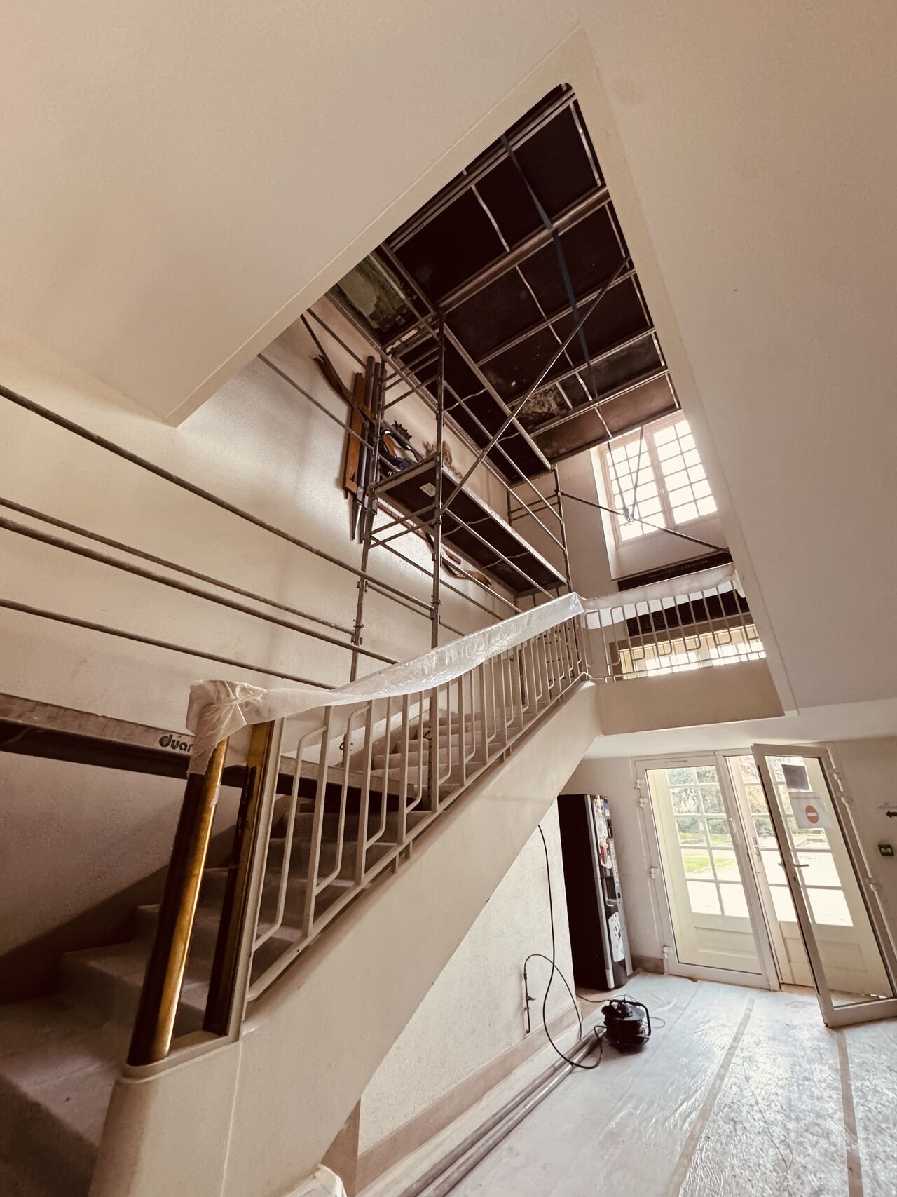 Contexte : Dans le cadre de la mise en valeur du patrimoine communal, la Ville de Vitry-le-François a engagé des travaux de réfection de l’escalier d’honneur de l’Hôtel de Ville. Cet ouvrage, emblématique du bâtiment, nécessitait une rénovation complète afin d’assurer sa pérennité et de restituer tout son cachet d’origine.
